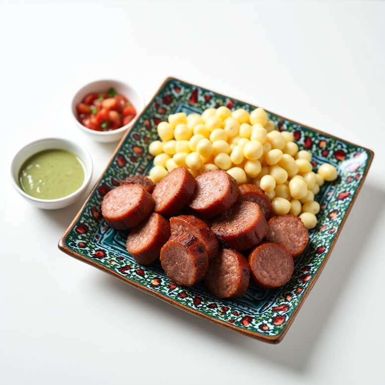 Deliciosas rodajas de embutido italiano acompañadas de una exquisita salsa de ají.