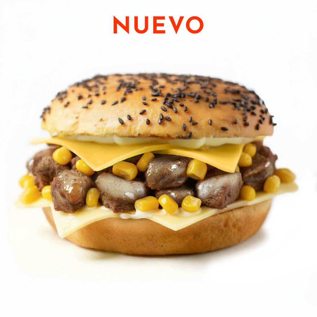 Lomo de asado, queso americano, queso holandés, crema de leche, choclo tierno y mayonesa de la casa.